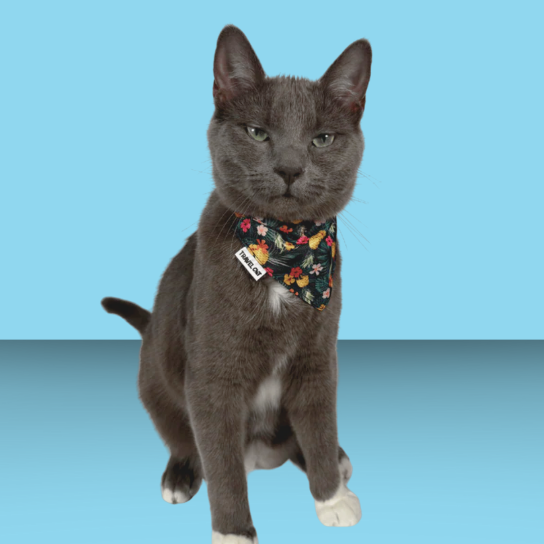 Infuse your cat's style with a burst of summer all year round with "The Hawaiian" bandana! Designed for both fashion and function, the vibrant bandana adds a pop of color to your furiend's look. It's not just a bandana though- inside, is a classic collar with a quick-release feature! The unique buckle design on this cat collar will automatically unsnap the moment force is applied to it. Whether it’s getting caught on a fence, a tree branch, or a furry friend’s teeth while playing, you can trust that your cat will be protected from getting choked.